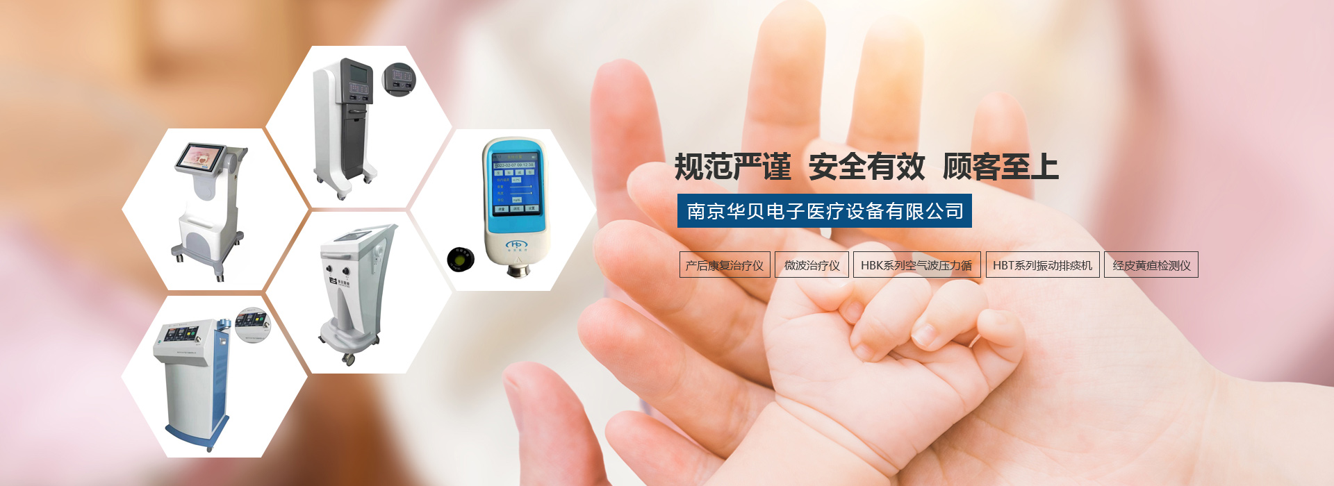 HBC產(chǎn)后康復綜合治療儀HBS微波治療儀HBK空氣波壓力循環(huán)治療儀HBT振動排痰機HBH經(jīng)皮黃疸檢測儀設(shè)備附件About us